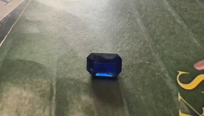 The sapphire's color is a rich, dark hue. Its vibrant shade adds a touch of luxury to any jewelry piece. This sapphire showcases some visible inclusions but a dark appearance, the rectangular cut and substantial carat weight of this sapphire offer endless design possibilities. Whether you're envisioning an elegant pendant, a statement cocktail ring, this gemstone will be the focal point of your creation.